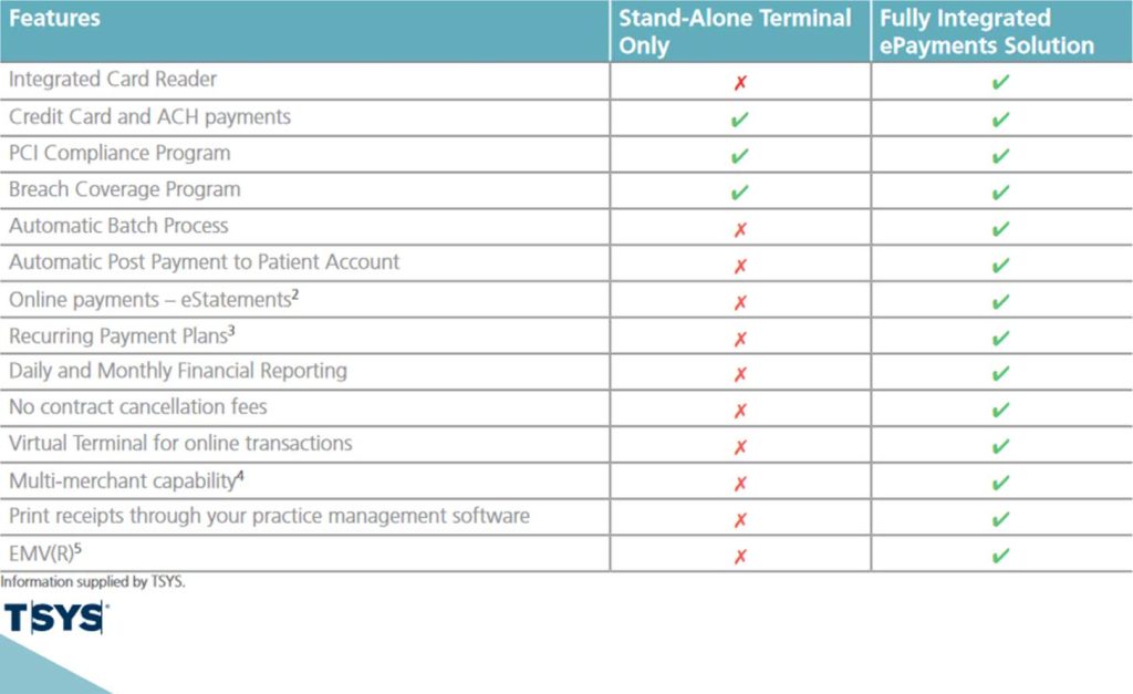 To complicate things further, practices have to consider factors that other businesses don't have to deal with – things like HIPAA compliance, accepting HSA and FSA cards, and integrating with practice management systems.