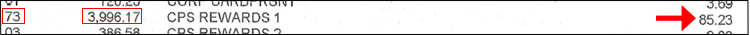 Below is a line taken from this business’s statement that list the processor’s charge for a Visa interchange category called “Rewards 1.” Visa’s posted rate and fee for this category at the time was 1.65% plus $0.10. As you can see from the statement, there was $3996.17 of volume and 73 transactions in this category this month. Let’s calculate the charge for this category.