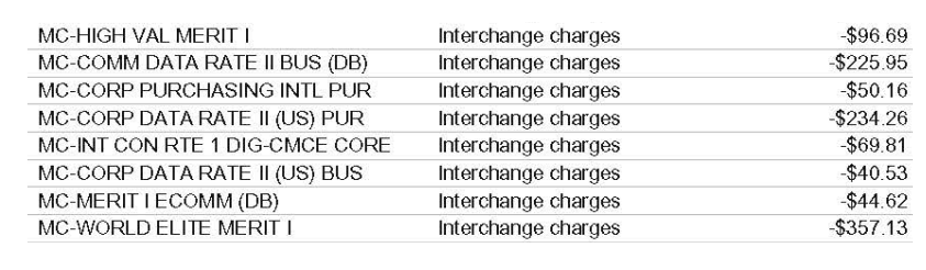 This processor abbreviates a little bit more (High Val for High Value) but Merit 1 is still clearly listed by full name in the interchange fees.