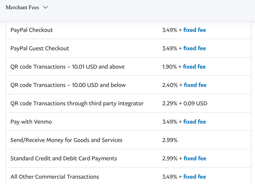 The merchant letter states that PayPal in-store transactions will follow a “PayPal Interchange” schedule. In the past, it has mirrored Discover's interchange, but as of this update in 2023, PayPal has different fees on its website, as seen in this screenshot.