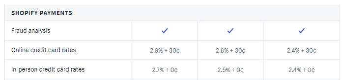 One of the biggest drawbacks to Shopify is the limitations it imposes on credit card processing. You have two options: use Shopify Payments, or pay an extra fee to use an alternate gateway. The fees Shopify imposes for that option are steep enough to negate cost benefits from choosing a lower cost processor. Unfortunately, that means that while you technically have the ability to use any processor you like, in practice, Shopify removes the most common reason to do so: lower costs. The screenshot below, from Shopify’s pricing page, lists the costs of payment processing.